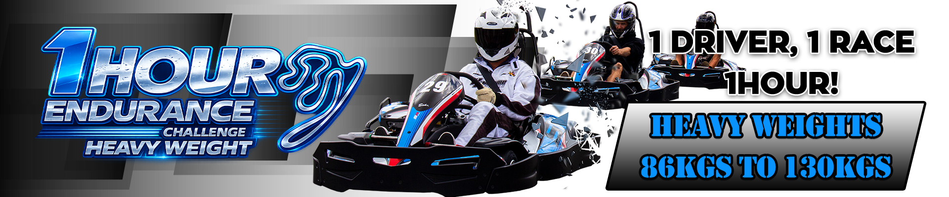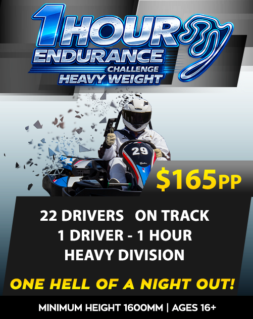 1 HOUR ENDURANCE CHALLENGE 2026 One Race. One Driver. One Hour. One Hell of a Night Out! CHALLENGE YOURSELF THIS YEAR BY RACING IN OUR HOUR LONG GO KARTING RACE!